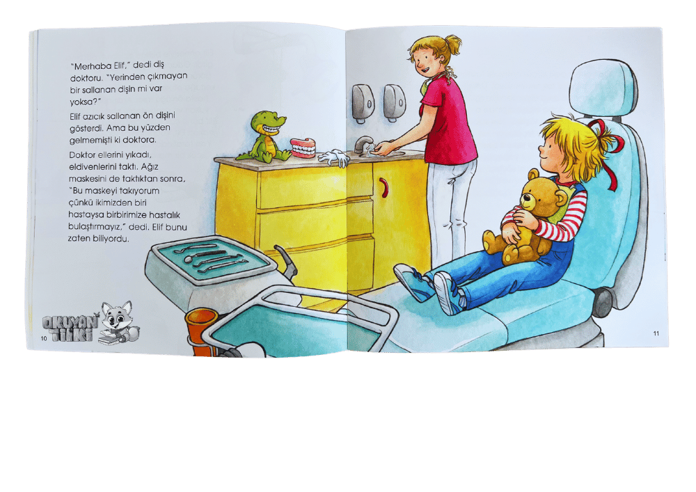 Elif dişlerini fırçalarken, dişinde kara bir leke gördü. Annesi hemen diş doktoruna gitmeleri gerektiğini söyledi. Elif diş doktoruna gideceğini duyduğunda biraz korksa da annesi ile babası onu rahatlattılar. Doktorun ne kadar tatlı bir insan olduğunu gören Elif, tüm korkularını unuttu. Doktor, Elif’e dişlerini nasıl fırçalaması gerektiğini de anlattı.