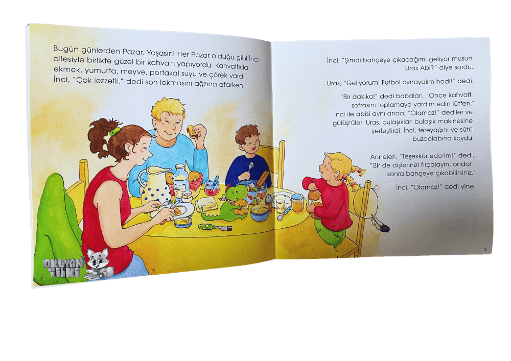 Diş fırçalamak mı? İnci bazı zamanlarda dişlerini fırçalamayı hiç istemiyordu. Annesi dişlerinin sağlıklı olması için dişlerini düzenli ve doğru olarak fırçalaması gerektiğini söylüyordu. İnci, diş hekiminden dişlerini doğru fırçalamayı öğrendikten sonra keyifle dişlerini fırçalamaya başladı.