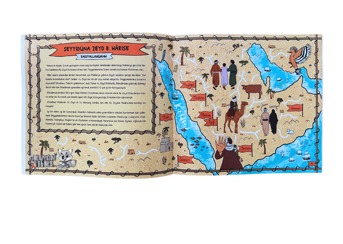 Peygamberimizin arkadaşlarının isimlerini duymuş muydun? Ya, demek öyle! Nerelerde, neler yaşadıklarını biliyor musun? Hımm... Demek onları da biliyorsun. Pekiii hem hayatları hakkında bilgi veren hem de yaşadıkları yerleri resimlerle anlatan bir kitap gördün mü? Hih... Hih... Hih... Gördün tabii uyanık! Şu an elinde tutuyorsun.