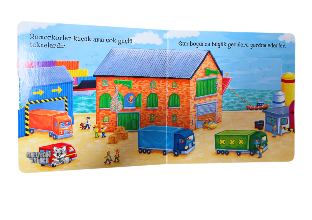 Bu kitap hareketli bölümleriyle çocukları bir limanda gezdiriyor. Çocuklara etrafta gördüklerinden farklı yerler olduğunu öğretiyor.