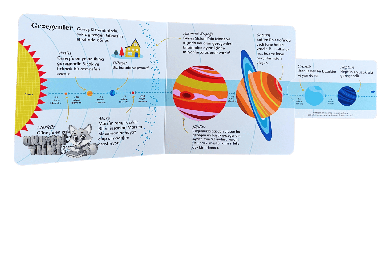 Meraklı çocuklar renkli resimleriyle ilgi çeken tamamen etkileşimli bu STEM kitabında uzayın temellerini öğreniyor!