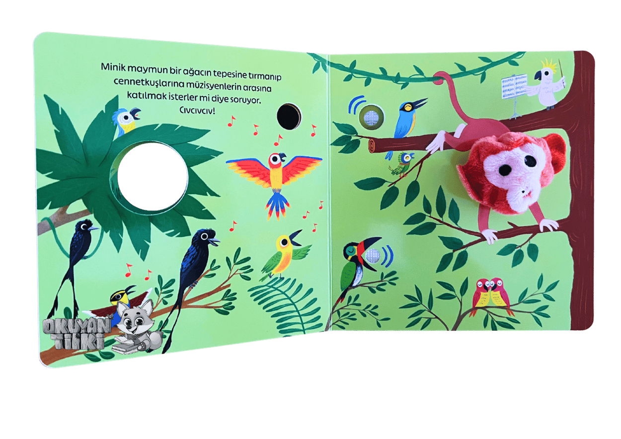 Minik maymun kuklasını hareket ettir, sesini dinle ve balta girmemiş ormanın seslerini keşfet!