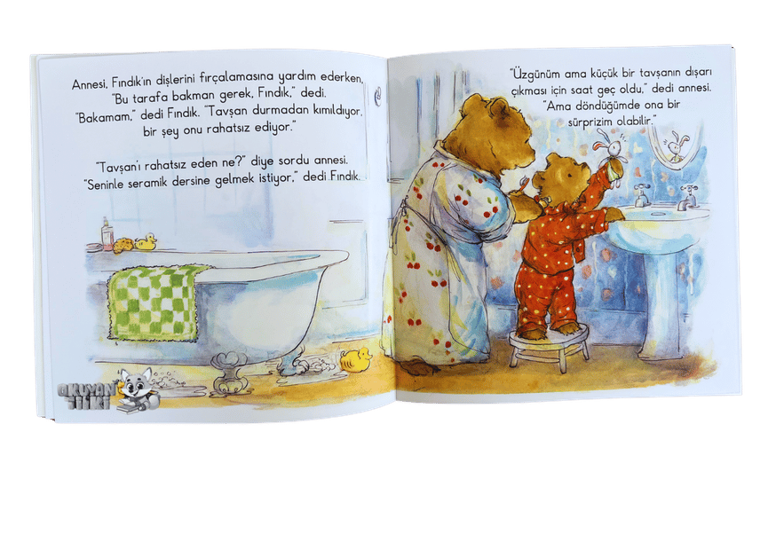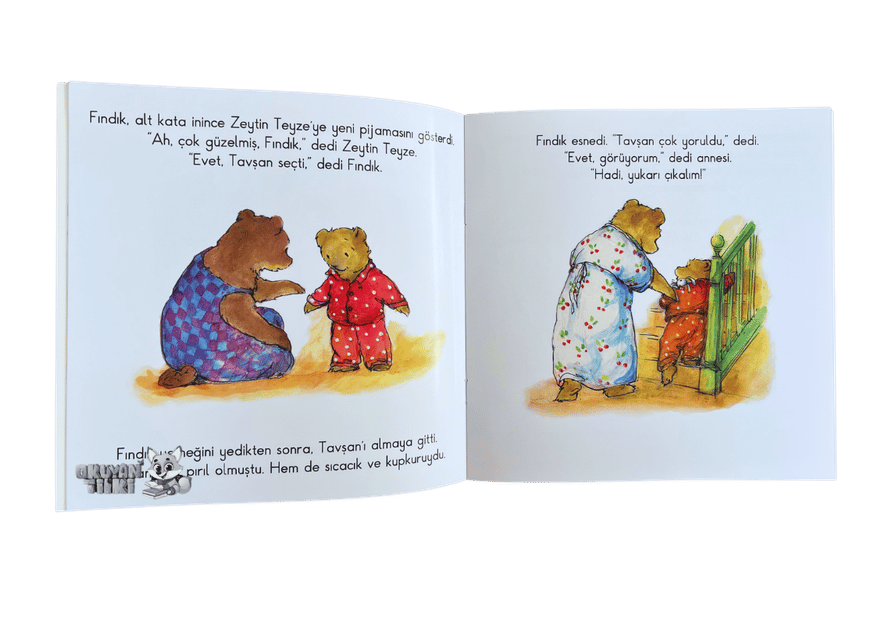 Fındık banyosunu yaptı, pijamalarını giydi. O gece Fındık’ı, annesinin arkadaşı Zeytin yatıracaktı. Birlikte şarkılar söylediler. Fındık, uyku zamanı geldiğinde bir türlü uyuyamadı.